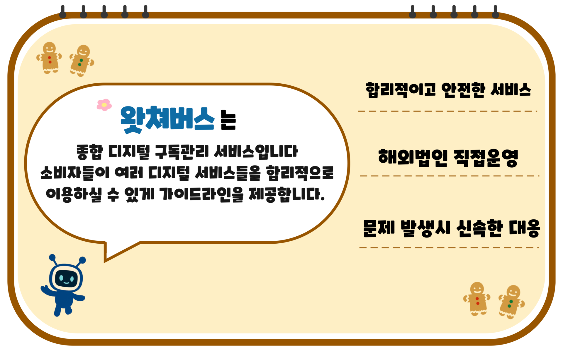 왓쳐버스는 비정상적인 결제 방식을 사용하지 않으며 소비자에게 항상 진실된 정보만을 제공할것을 약속드립니다.
